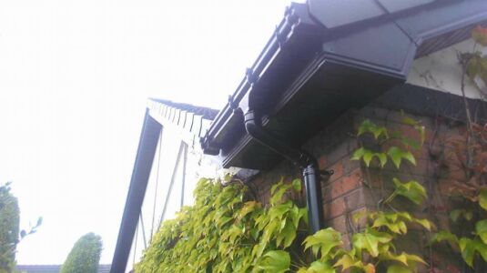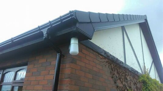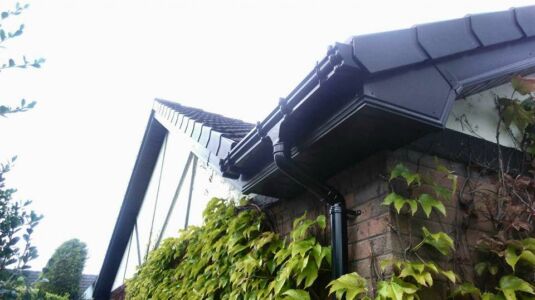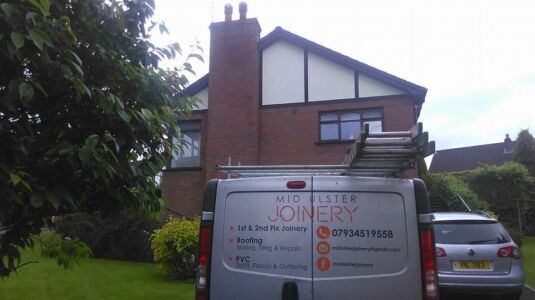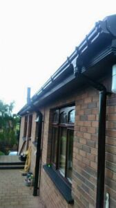 Black fascia, soffit, ogee guttering and dry verge was supplied and fitted by Mid Ulster Joinery.